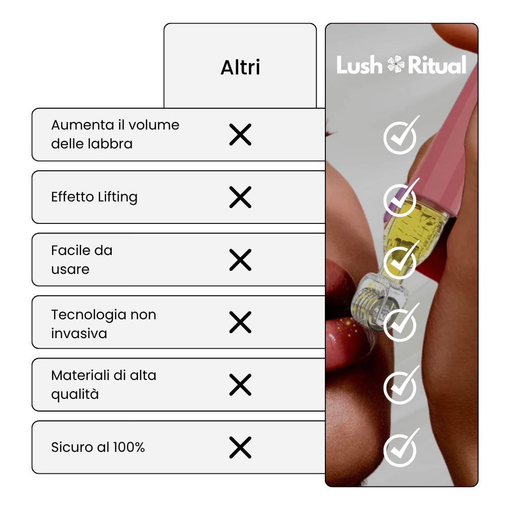 "Uso il kit solo due volte a settimana e noto una differenza incredibile. Le labbra sono più morbide, definite e sembrano naturalmente più giovani."